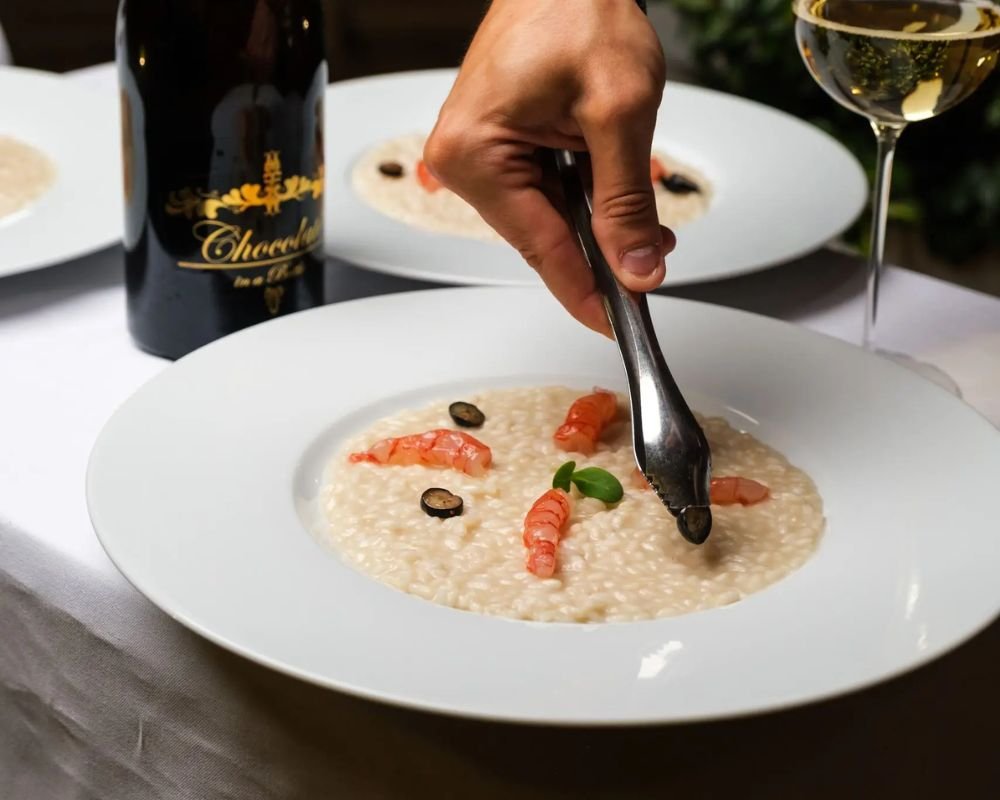 Can you guess the hidden ingredient in this risotto? Clue. It’s not truffle oil, peas or even mung beans. This decadent dish uses Chocolate in a Bottle – which comes in both alcoholic and alcohol-free sparkling versions – that brings a subtle sweetness and velvety cocoa-richness to the savoury silkiness of the risotto. Paired with plump Sicilian red prawns, bursts of fresh blueberries, and delicate shavings of dark chocolate, it’s an unexpected harmony of land and sea – indulgent, intriguing, and utterly irresistible…