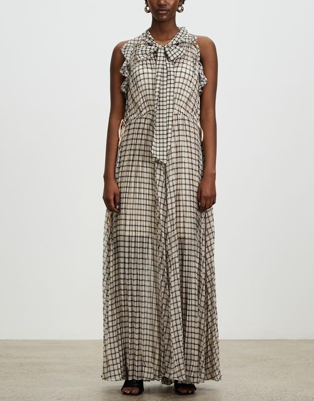 - The best dressed guest at the wedding – Monochrome Check Maxi Dress, $745 available on The Iconic