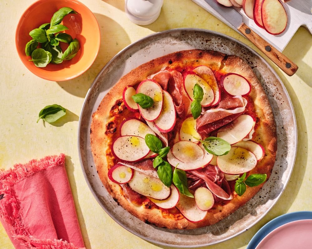 Now Lucy is bringing her effortless, flavour-first approach to Ondine Flat Peaches, showing how their sweet, juicy taste can turn a simple pizza into a show-stopping summer treat. Ondine Flat Peaches are the addition to your pizza you didn’t know you needed. The secret? They’re sweet and juicy whether eaten crunchy or soft. For pizza, grab a firm Ondine and slice away. Paired with salty prosciutto, Ondine Flat Peaches deliver a sweet hit with no mess – the kind of flavour combo that will have your guests sticking around for another slice. Or four!