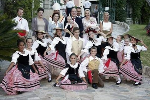 A dance spin, that is. Monaco’s cutest royal twins, Princess Gabriella and Prince Jacques, have rarely attended public engagements since their birth in December 2014. But the royal family, led by dad, Prince Albert II and mum, South African born Princess Charlene of Monaco, who married in 2011, hit the dance floor with babies in-toe for an official public engagement, attending Monaco’s annual Pique Nique Monegasque (Monaco’s picnic). OK well they didn’t literally hit the dance floor, but they did watch local children perform traditional Monegasque dance. The wee tots dressed in traditional costume wearing red black and white, along with mum in white, and dad in black, red and white.